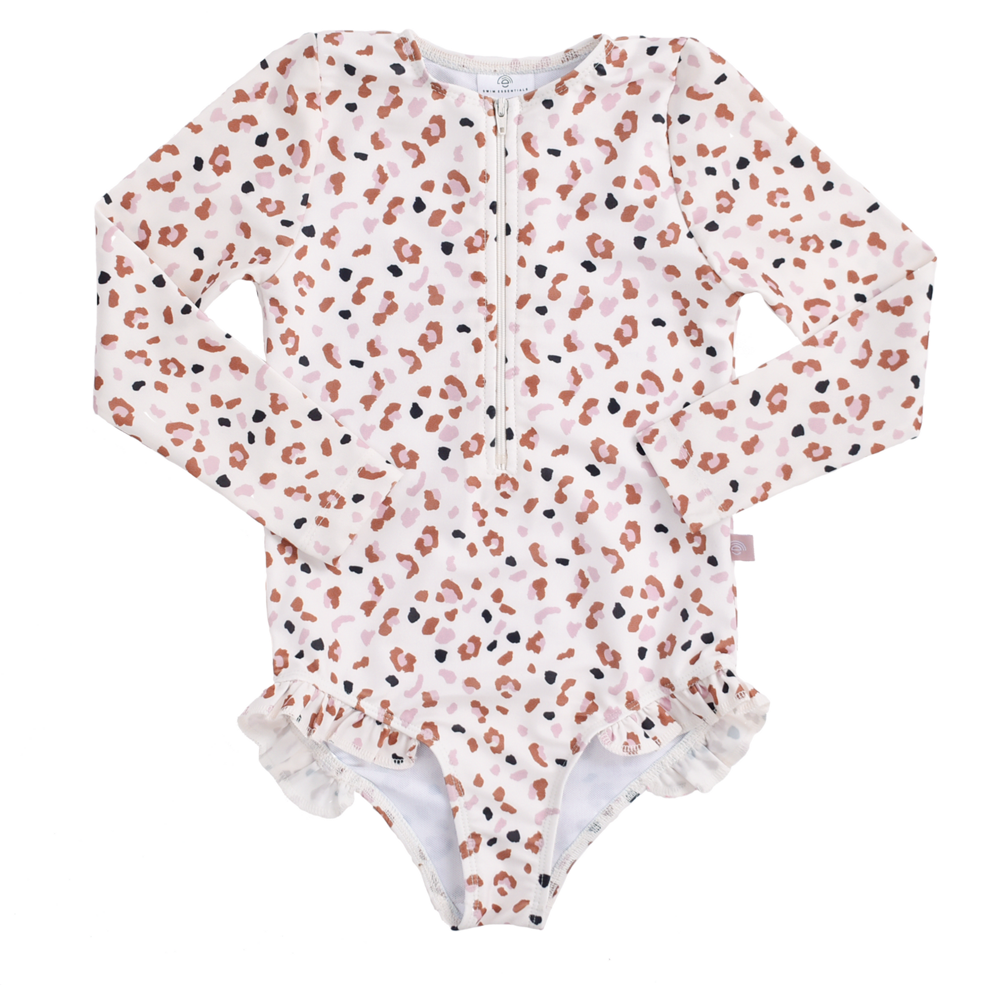 Khaki leopard print Swimsuit girl long sleeves by Swim Essentials