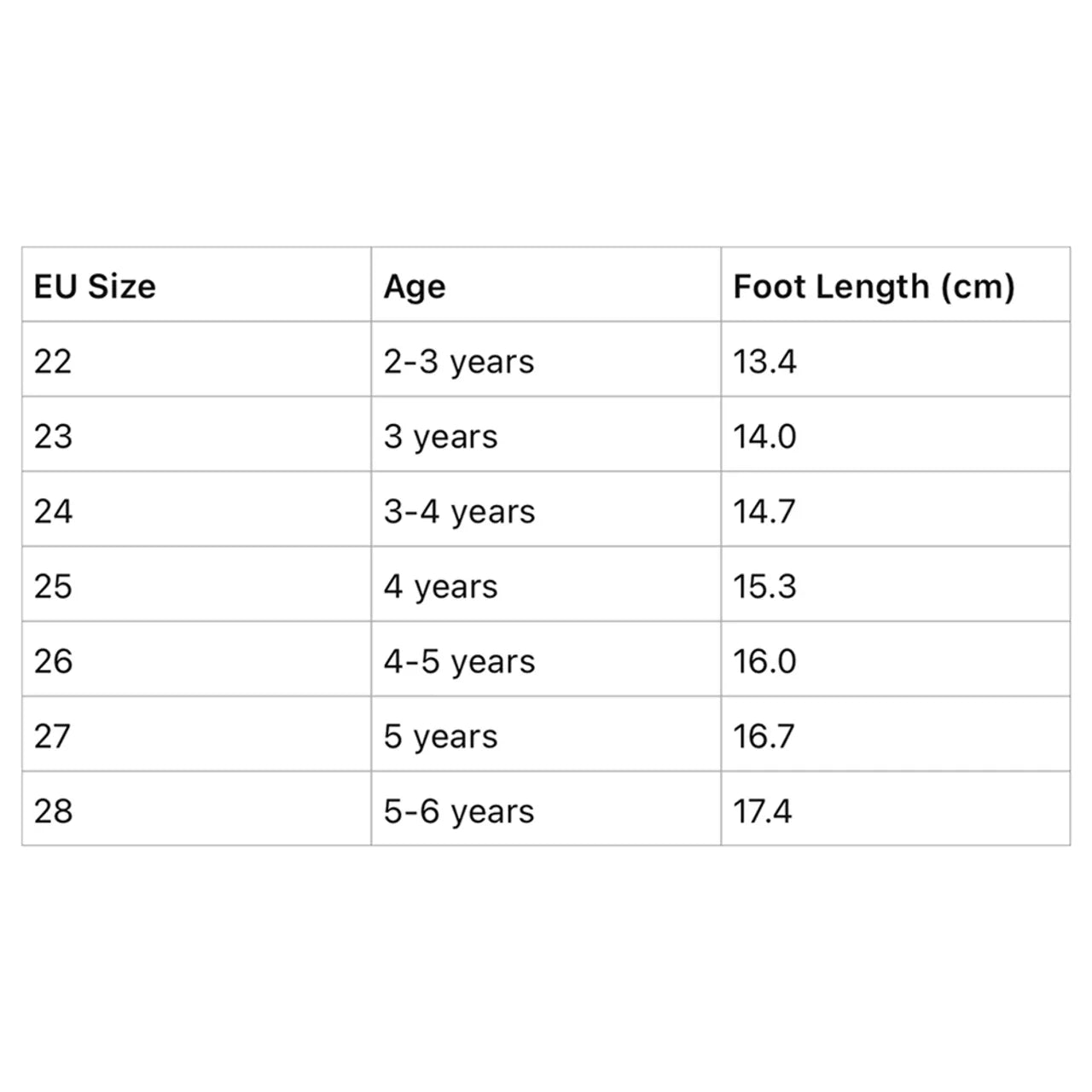 Sizes from 22 up to 27